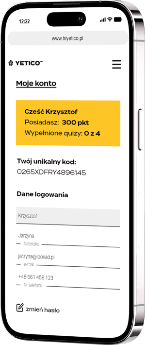 Stworzenie dodatkowych aktywacji dla uczestników w postaci konkursu oraz quizów wiedzy o produktach Yetico.